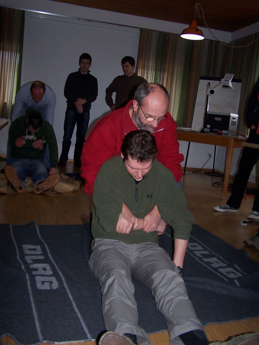 Dort, wo wir sonst Rudern und Radfahren simulieren, haben wir nun mal mit einer stattlichen Teilnehmerschar ein Februar-Wochenende lang Atemstillstand, Sonnenstich und Knochenbruch simuliert. Selbstverständlich ohne Ketchup in unserer Guten Stube, aber doch so anschaulich, dass uns Ausbildungsassistent Hans-Dominik Müller unter der Leitung von Torsten Huber sehr gut deutlich machen konnte, worauf es im Notfall wirklich ankommt. Keine Frage blieb unbeantwortet und reichlich Spaß gemacht hat es auch. Und sollten wir es eines hoffentlich fernen Tages mal nicht mit Simulanten zu tun haben, werden wir uns gern an den einen oder anderen „Sinnspruch“ von Hans-Dominik erinnern. An Thomas, der diese gelungene Veranstaltung eingefädelt hat, und Hans-Dominik ein ganz großes Dankeschön! Wir machen so was in ein paar Jahren noch mal – und dann mit einem noch breiter gefächerten Teilnehmerkreis – oder? Wolfdietrich Jacobs |