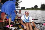 Die Weinkönigin lacht Kaum waren die zwei KRA-Mannschaften zum Marathon von Budapest nach Baja angemeldet, erschien auf der Veranstalter-homepage in großen Lettern eine Meldung, wonach Simone zur Weinkönigin der Veranstaltung gekürt werden würde – sicher eine ausgezeichnete Wahl. Pál, einmal mehr als Ruderer, Dolmetscher und Organisator dabei, erklärt, daß es aus Anlaß der Meldung des hundertsten Teilnehmers ein Weinpräsent geben würde – oder gar einen kleinen Weinberg – oder sie würde Namenspatronin einer neuen Rebsorte? Aber auch andere Fragen waren durchaus spannend: Wie klappt es mit der Unterbringung im Paddelklub zwar nahe dem Start gelegen, aber von einem eingezäunten Hochsicherheits-Sportpark umgeben? Haben wir uns ausreichend und richtig vorbereitet? 165 Kilometer Donau – fast die gesamte Nord-Süd-Ausdehnung Ungarns – gilt es schließlich wettkampfmäßig zurückzulegen. Während sich die Mix-Mannschaft mit Simone und Martin sowie Sabine Vogt aus Wiesbaden (wo wir doch auch selbst einige Sabinen hätten....) überwiegend mit der Streckenlänge, Hände- und Rollsitzpräparation befaßte, galt das Hauptaugenmerk der Männer-Crew dem Gegner aus München. Die drei Bundesliga-Ruderer waren schon echte Modellathleten. Falls sie in der Lage sein sollten, Ihre Kräfte auch auf der Strecke, mehr als dem dreihundertfachen ihrer üblichen Distanz, einzuteilen, könnte es spannend werden. Schon im Morgengrauen, das an einem so schönen Sommermorgen in dieser reizvollen Umgebung diesen Namen nicht verdient hätte, gingen Skiffs, Doppelzweier, eben die Kielboote und Vierer jeglicher Spielart auf die Strecke. Mit insgesamt 35 Booten ein recht respektables Feld, das sich südwärts bewegte. Unsere Männer-Mannschaft konnte sich zwar etwa ab Kilometer 10 in Führung bringen, aber nie weit genug von den Gegnern vom Starnberger See und auch des Külker Ruderklubs absetzen. So kam es wie befürchtet, daß wir nach etwa zwei Dritteln der Distanz doch die jugendlichen Helden vorbei lassen mußten. Bedauerlich, denn so richtig überzeugend fuhren sie dann auch nicht davon. An Wasserstand und damit Strömung gab es in diesem Jahr etwas mehr als üblich, dafür hielt sich die Temperatur deutlich zurück. Beides sorgte für ziemlich schnelle Zeiten: Die Sieger im Renn-Doppelzweier und Gesamtsschnellsten blieben sehr deutlich unter 10 Stunden. Für die Männer blieb es bei Silber, die Mixedschaft, die mühelos auch Männer-Mannschaften hinter sich lassen konnte, gab es gleich Gold zum Einstand. Und für die Weinkönigin –leider ohne adäquates Diadem- eine Flasche Rotwein zusätzlich zur großen Sponsor-Überaschungstüte mit den allseits beliebten Nützlichkeiten. Daß der Wein sehr lecker war, konnte die gesamte KRA-Truppe zusammen mit unserem unermüdlichen Istvan beim abschließenden Fischsuppe-Essen feststellen. Schon als Jugendliche sind Istvan und Pál zusammen in Budapest gerudert – und ohne ihn wäre die Organisation für uns gar nicht durchführbar. Ein einfaches Dankeschön kann da gar nicht ausreichen!... Und Baja ohne Fischsuppe geht auch nicht. Das ist eine Art lokales Nationalereignis – auch nicht ohne Grund. So hätte der Abend sehr harmonisch und gemütlich ausklingen können, aber in dieser Hinsicht hat der Veranstalter gerade für uns, die wir ja noch eine mehr als zwölfstündige Heimfahrt vor uns hatten, eine besondere Folter ausgedacht: Discomusik bis in den späten Morgen volles Rohr direkt aufs Zelt. So sind wir wenigstens pünklich um 4:00 aus dem Schlafsack gekommen, konnten Istvan wieder in Budapest und Simone zur weiteren Urlaubsgestaltung in St. Pölten am Bahnhof abgeben. Und es blieb noch Zeit für eine Mikro-Geburtstagsfeier für Martin. Richtig früh in Karlsruhe waren wir trotzdem nicht, denn wir durften lernen, daß moderne Autos nicht unbedingt mit Reserverädern ausgestattet sind. Gerade Sonntags abends eine echte Herausforderung. Aber waren wir nicht angetreten, mit unseren Herausforderungen zu wachsen? Genau – haben wir alles in allem doch ganz gut hingekriegt. Ergebnis und Anleitung für Neu-Mitmacher am 29.7.2011 unter www.bpbajaregatta.com. Wolfdietrich Jacobs