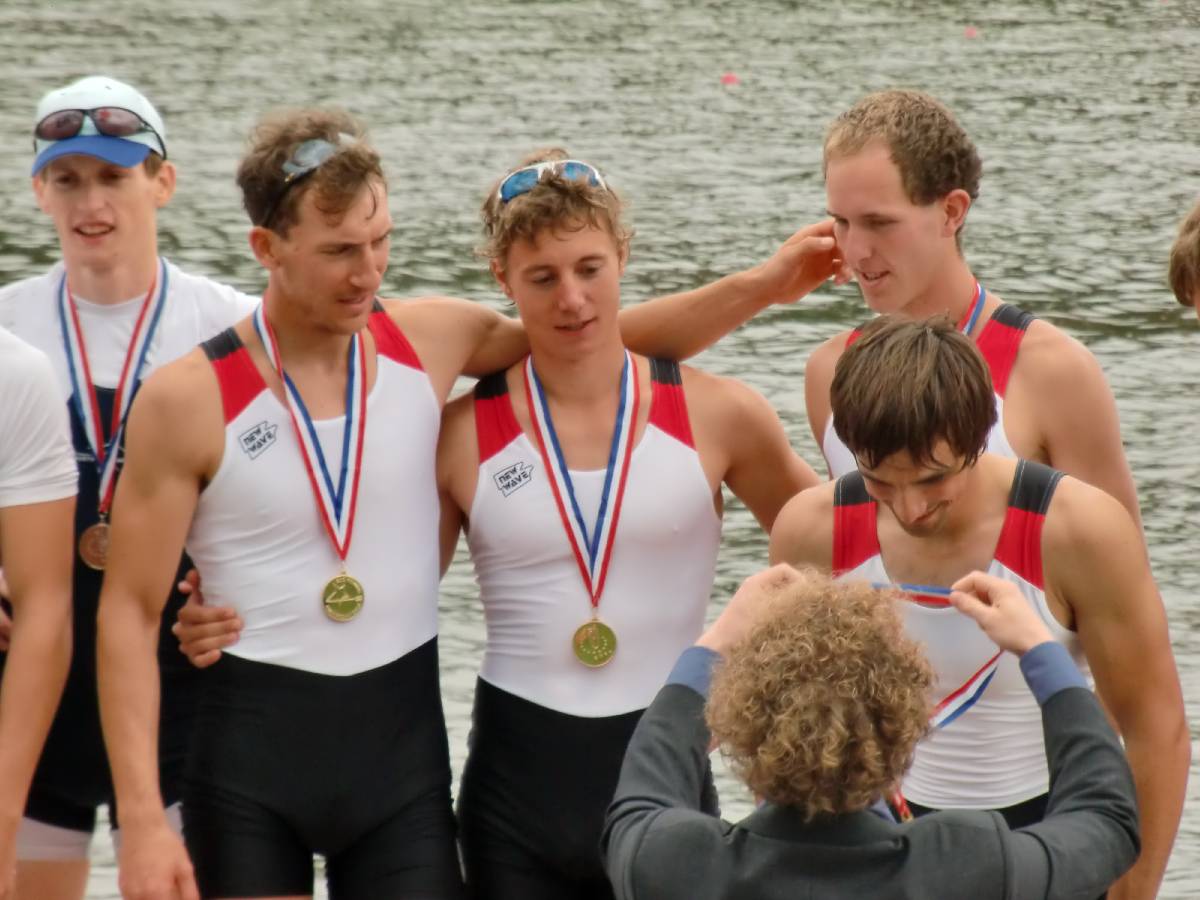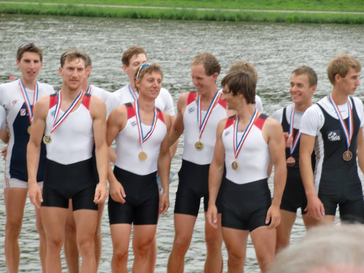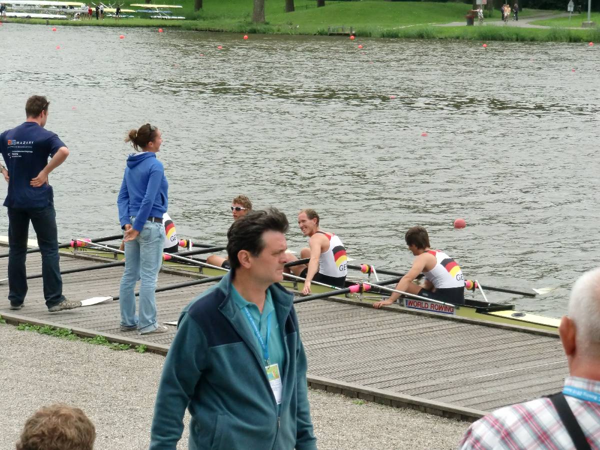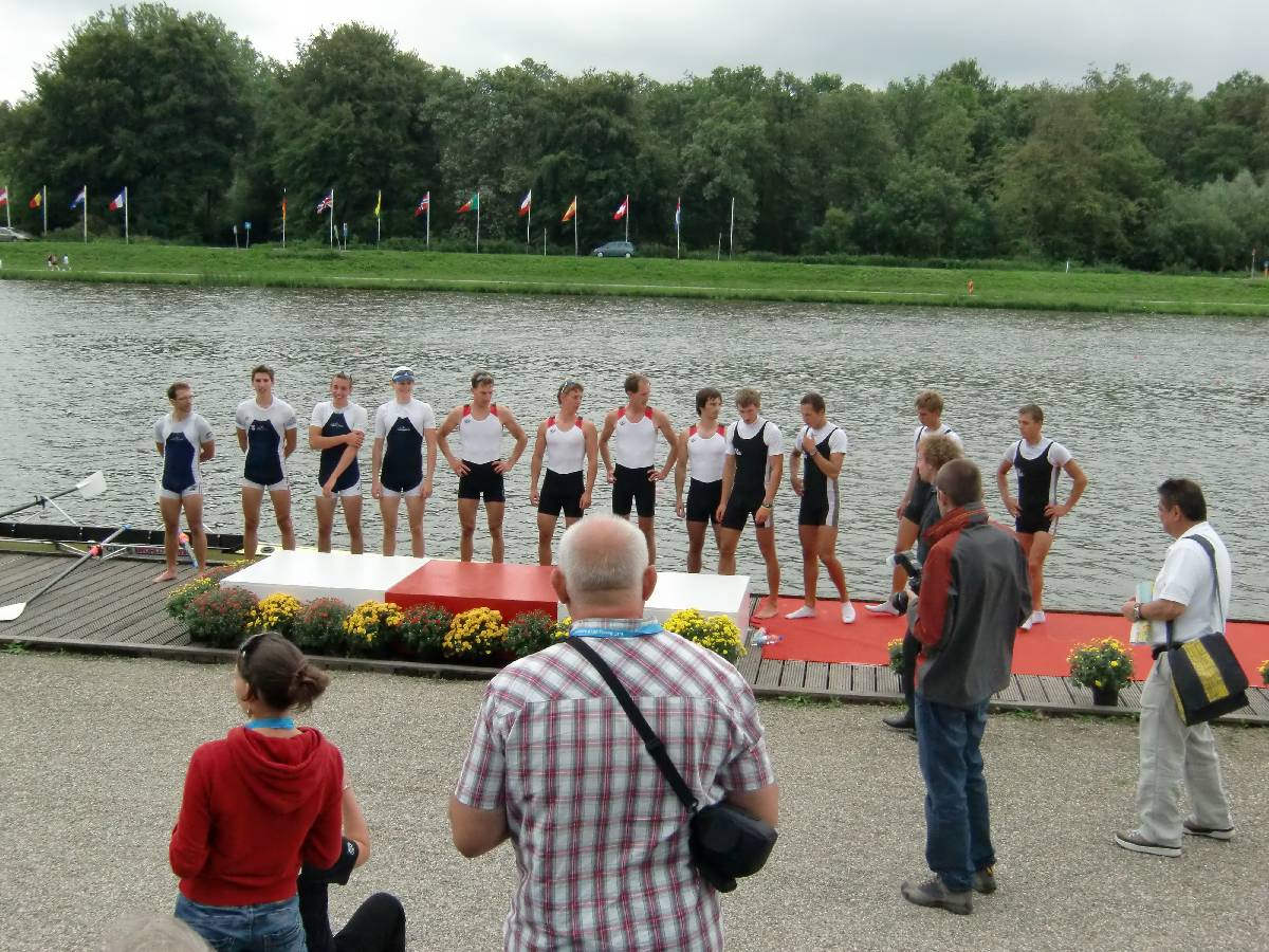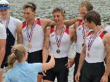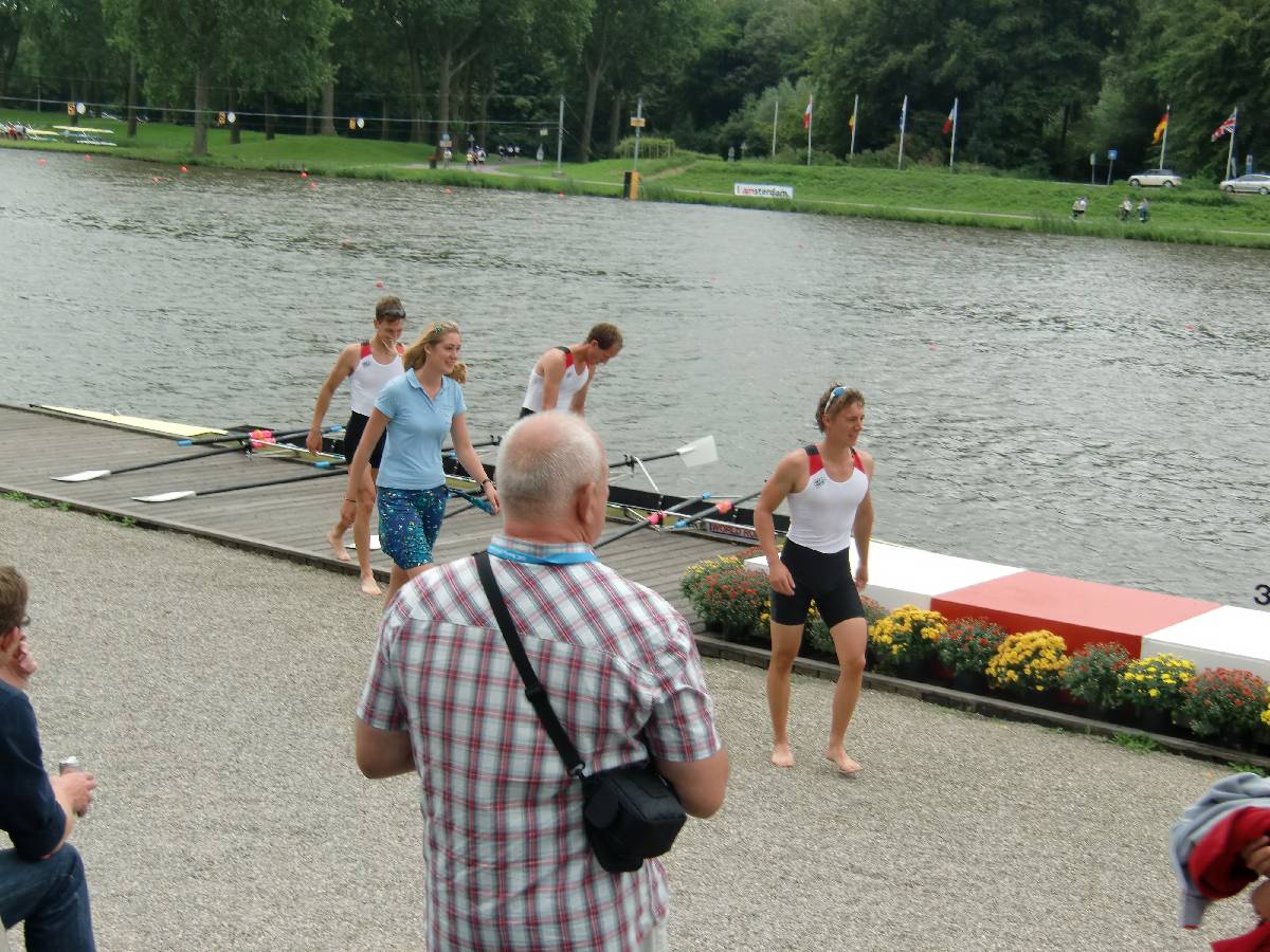 Gold-Medaille und neuer Rekord bei den Europäischen Hochschulmeisterschaften Karlsruhe. (ver) - Zum sechsten Mal wurden die europäische Hochschulmeisterschaften nun ausgetragen und in diesem Jahr waren sie zu Gast auf der ältesten Regattaanlage der Welt, der Bosbaan in Amsterdam. Mit insgesamt über 450 Teilnehmern aus 12 Nationen konnte bereits im Vorfeld ein erster Rekord vermeldet werden. Nach der Qualifikationsregatta Anfang Juli, den Deutschen Hochschulmeisterschaften, starteten für deutsche Universitäten, 19 Boote in den 21 von der EUSA (European University Sports Association) ausgeschriebenen Bootsklassen. Am Start war auch der deutsche Leichtgewichts-Männer-Doppelvierer, der bereits 2008 den Titel in Zagreb errudern konnte und EUC-Rekordhalter ist. Im Boot, das für die Uni Mainz startete, saßen der Karlsruher Franz Gravenhorst zusammen mit seinen Ruderkollegen Christoph Thiem, Pascal Ludwig und Valentin Schätzlein. Komplettiert wurde die Crew dieses Jahr durch Ersatzmann und Betreuer Konstantin Gensow. Trainiert wurde die Crew vom Headcoach des Karlsruher Rheinklub Alemannia, Axel Schnur. Mit einem starken Auftritt, zeigte das Quartett bereits ihre alte Stärke und setzte ein Ausrufezeichen. In 6:01,74 Minuten gewann sie den Vorlauf und pulverisierten damit nicht nur mit über 6sec ihren bestehenden Rekord, sondern wurde nach dem Rennen auch vom Veranstalter liebevoll auf den Namen 'Flying Mainzelmaennchen' getauft. Damit war der Einzug ins Finale bereits nach dem Vorlauf gesichert und die Mannschaft konnte den Samstag zum Training und zur Regeneration nutzen, während für die nicht direkt qualifizierten Mannschaften die Hoffnungsläufe ausgetragen wurden. Der Sonntag stand ganz im Zeichen der EUC Titelvergabe 2010. Die deutsche Mannschaft konnte sich in allen beschickten Bootsklassen für die Finalrennen qualifizieren. Auch für das Leichtgewichts-Männerquartett war es der Tag der Entscheidung, ob die hervorragende Leistung aus dem Vorlauf am Freitag nochmals gezeigt werden kann. Nach dem Wiegetermin stieg die Anspannung und Nervosität innerhalb der 2 Stunden bis zum Start merklich. Mit einem guten Start konnte sich die Crew allerdings gleich zu Beginn des Finalrennens eine knappe Führung vor der polnischen und österreichischen Mannschaft herausrudern. Bis ungefähr zur Streckenhälfte setzten sich diese drei Mannschaften von den anderen Finalisten aus England und einer weiteren polnischen Mannschaft ab. Mit einem beherzten Spurt konnte sich aber der deutsche Leichtgewichtsmännerdoppelvierer von den zwei Booten absetzen und eine klare Führung herausrudern. Dieser Vorsprung wurde mit dynamischen Schlägen bis ins Ziel auf knapp 2 Bootslängen ausgebaut. Der Kampf um die verbleibenden Plätze blieb spannend und Österreich konnte sich ganz knapp den Attacken der Polen erwehren und sich den zweiten Platz sichern. Aber für die deutsche Mannschaft gelang ein überragender Sieg in 5:57,89 Minuten und damit verbesserten sie ihren am Freitag aufgestellten EUC Rekord um weitere 4sec. Damit wurden sie dem Namen 'Flying Mainzelmaennchen' ganz und gar gerecht, denn außer dem Finalrennen des Männer-Achters, war kein anderes Boot im Zeitvergleich schneller. Für die Uni Karlsruhe/KIT waren ebenfalls zwei Boote am Start, der Frauen-Doppelvierer und der leichte Männer-Vierer ohne Steuermann. Beide konnten in einem hart umkämpften Rennen jeweils mit Bronze heimreisen. Mit insgesamt neun Uni-EM Siegen wurde Deutschland vor Polen (7 Titel) und GB (4 Titel) die erfolgreichste Nation der EUC 2010 in Amsterdam. PfoKa-Sport.de
