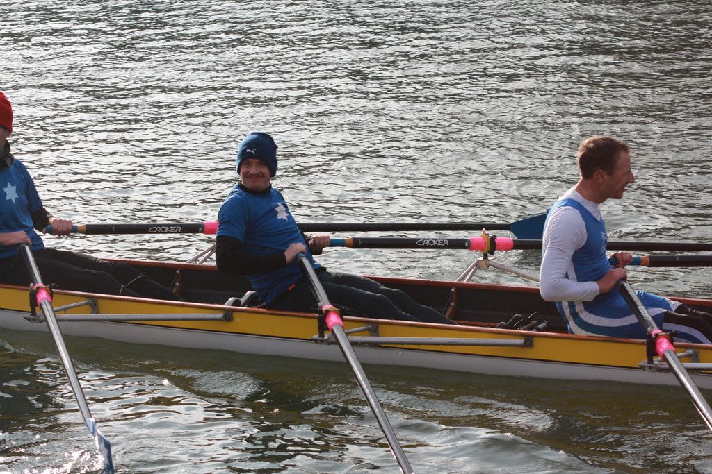 Während sich die Männer des Mix-Vierers noch Helge und AxelM ins Boot holten, um sich von unserem Chef persönlich zum nächsten Sieg steuern zu lassen, komplettierten sich die Damen mit der nun rudernden Melanie und AlexS zum Frauen-Masters-Boot und wurden von Jörg auf dem Steuersitz ebenfalls zur besten Rundenzeit gesteuert. Es gibt Gerüchte, selbst die Wendeboje habe sich vom Manöver des MichaelH beeindruckt gezeigt.