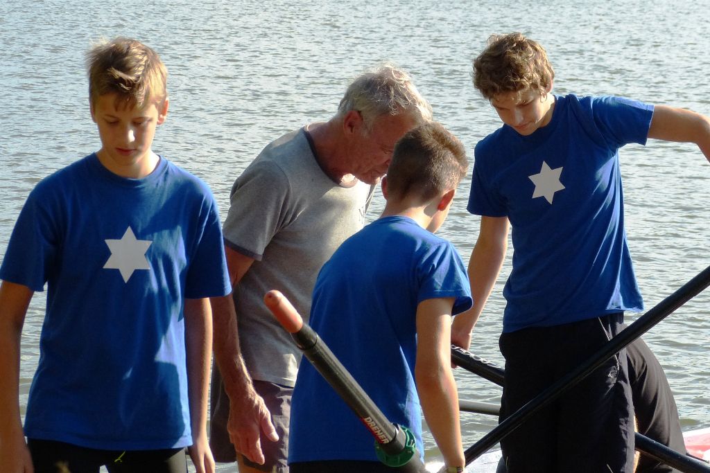 Samstags dann, musste der Vierer noch einmal trainieren, was man in den vergangenen Sommerferien leider nicht machen konnte, da die Besatzung nie vollständig zum Training erschienen war. Zudem trainierten noch andere, um sich auf die neuen Gegebenheiten, wie das Albanosystem und den Ampelstart einzustellen. Außerdem riggerten wir noch die Boote auf und freuten uns schon auf unsere Rennen. Jonatan begann und kam leider nicht über einen Vierten Platz hinaus. Ebenso Jonas und Niclas im Doppelzweier und Levin im Einer, der nur kurz nach Maximilian startete, welcher in seinem ersten Einer-Rennen sogleich einen Sieg mit 10 Sekunden Vorsprung einfuhr. Der U15-Doppel-Vierer fuhr sein wohl bestes Rennen, erzielt aber dennoch nur einen 4. Platz. Zu Mittag gab es Spaghetti und nachmittags erzielten Jonatan und Marcel im Doppel-Zweier noch einen 3. Platz; Jan und Tim erreichten in derselben Bootsklasse nur den 4. Platz. Der Abend verging bei Gegrilltem und einigen Späßen schnell und schon war es wieder Zeit zum Outdoor-Zähneputzen, was uns jedes Mal aufs Neue erfreut.