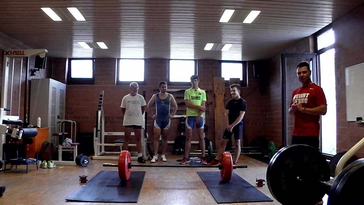 Dieses besagt, dass der Athlet in einem der beiden Disziplinen des Gewichthebens, dem Reißen und Stoßen, innerhalb von drei Versuchen einen bestimmten Prozentsatz seines eigenen Körpergewichts abhängig des Alter und Geschlechts bewältigen muss. Dabei müssen sich Erwachsene im Stoßen und unter 19-Jährige im Reißen beweisen. Da der Begriff des Reißen und Stoßen wahrscheinlich nicht jedem geläufig ist, hier eine kurze Erläuterung. Beim sogenannten Stoßen wird die Langhantel aus der ruhenden Position vom Boden aus über den Kopf gestemmt. Dies passiert in zwei Bewegungsabläufen, dem Umsetzen und Ausstoßen, was auch den entscheidenden Unterschied zum Reißen darstellt. So wird die Hantel beim Umsetzen erst einmal auf die Schulter gehoben, wo sie nach einer kurzen Pause über den Kopf gestemmt wird. Beim Reißen fällt der erste Schritt weg, so wird die Hantel in einer Bewgung vom Boden über den Kopf gehoben. Diese technisch schwierig zu bewältigenden Disziplinen hatten die Sportler über einen langen Zeitraum hinweg bei Andreas Kusterer, dem Krafttrainer und selbst erfolgreichen Gewichtheber, geübt und sich dort vorbereitet.
