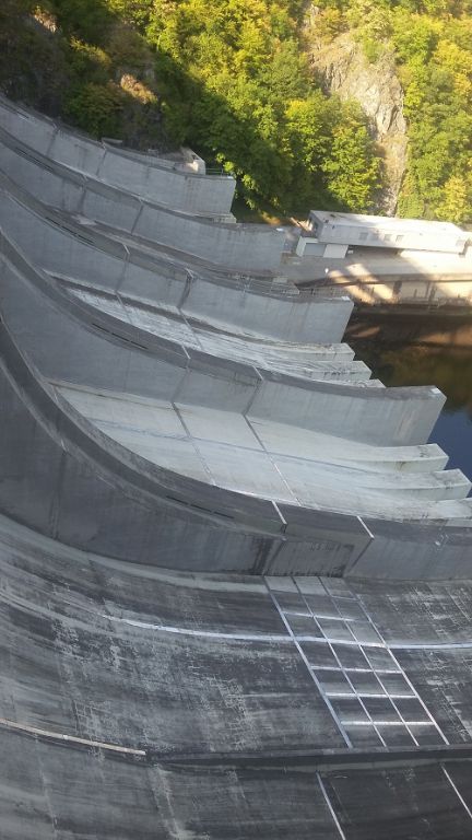 … wir am Staudamm Slapy ganz schön Glück hatten, denn der Traktor, der die Boote am Oberwasser aufnimmt und zum Unterwasser fährt, ist nicht jeden Tag da. Wer beim Aufladen im Wasser stand, hat die Abkühlung genossen, wer im Unterwasser stand, hat gemerkt, dass das Wasser dort mindestens 10 °C kälter ist.