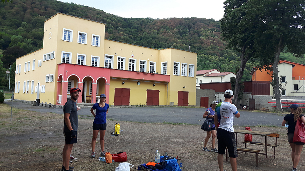 … wir an interessanten Orten waren, so etwa in Roudnice: Der Ruderverein dort hat nicht nur eine Feldküche auf Rädern, sondern auch einen ganz bemerkenswerten Multifunktionsraum mit Bar, Küche, Ergobereich und Werkstatt in einem.