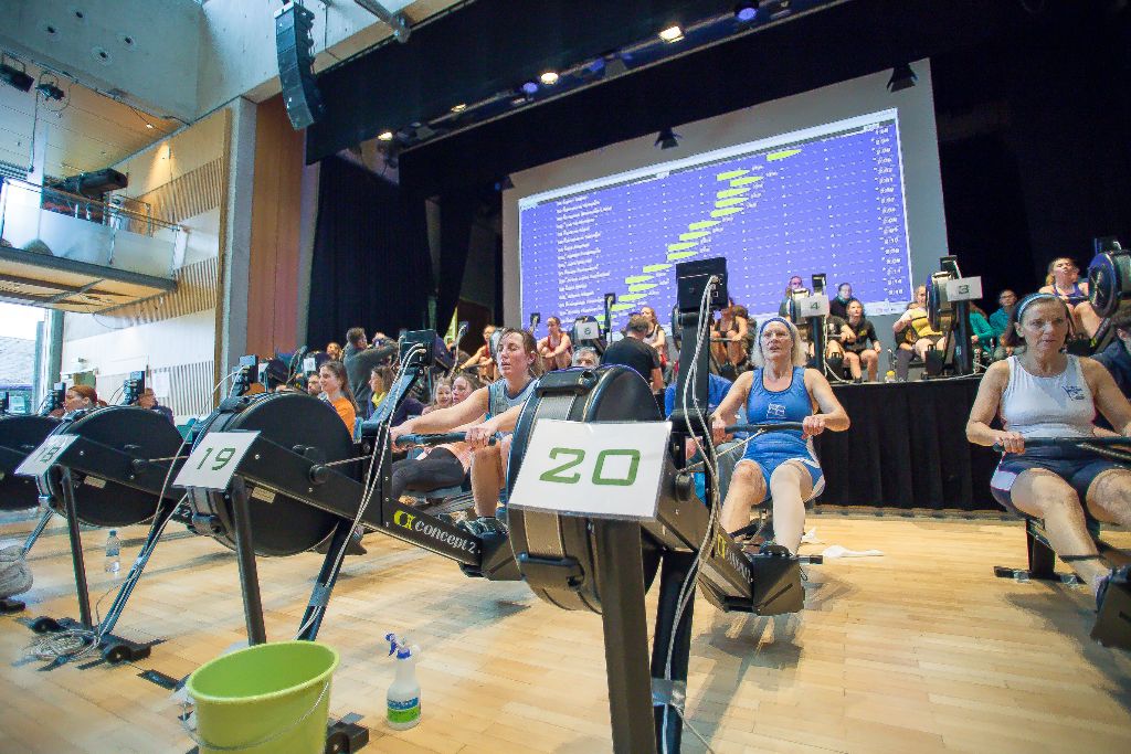 Um die zahlreichen Rennen, die -logo- eine halbe Stunde in Anspruch nehmen, an einem Tag über die Bühne zu kriegen, werden jeweils mehrere Rennen zu einem Lauf zusammengefasst, so dass möglichst viele Maschinen besetzt sind. Selbstverständlich werden die Rennen getrennt gewertet, aber in Starnberg leider nicht wie in anderen „Ergo-Tempeln“ seit Jahren üblich in unterschiedlichen Farben und in Blöcke aufgeteilt auf der großen Leinwand dargestellt. Und wenn man irgendwo, sei es auf der projezierten „Regattabahn“ oder dem Ergo-Display, die zu erwartende Strecke ablesen könnte, wäre diese schöne Veranstaltung noch runder.