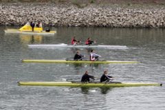 Die schnellen Mädchen und Jungen hatten den anfänglichen Zeitverlust im Verlaufe der Regatta wieder aufgeholt, sodass die Breitensport-Gigdoppelvierer mit Steuermann im vorgegebenen Zeitplan auf der 300 m Strecke im Nordbecken starten konnten. Erst am Vormittag hatten die Alemannen eine kleine Trainingsrunde absolviert – eine lohnende Bemühung gegen das starke KRV-Team. Arthur Bittner, Anna-Lisa Giehl, Kristina Werner, Stefan Huster und Dietmar Kup (Steuermann) hatten auf den letzten Metern alles gegeben und ruderten am Ende mit einem guten Meter Vorsprung ins Ziel.