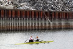 Das Mixed- Stadtmeisterschaftsrennen im Doppelzweier trugen die Masters-Sportlerinnen und Sportler vom Ruder-Verein Wiking unter sich aus. Johanna Hörmann und Martin Damm ruderten mit sicherem Vorsprung auf Platz 1.