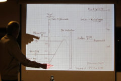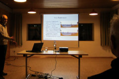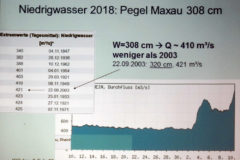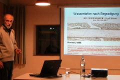 Wie die Erosion, Abflussbildungen und Interaktion mit dem Grundwasser den Wasserstand des Rheins beeinflussen, das stellte Jost mit Abbildungen ebenso dar, wie Wasserströmungen, Fließgeschwindigkeiten und Pegel-Messungen. Aber trotz aller Hydrologie bliebe der lebendige Strom auf seinen 1.233 Rheinkilometern natürlich nicht zu jeder Zeit genau berechenbar, so Jost am Ende seiner Ausführungen.