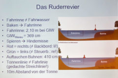 Jost sprach über die Baken und Spierentonnen, die das Fahrwasser markieren. Ruderer und Steuerleute haben hier unbedingt 10 m Abstand zur Tonne einzuhalten!