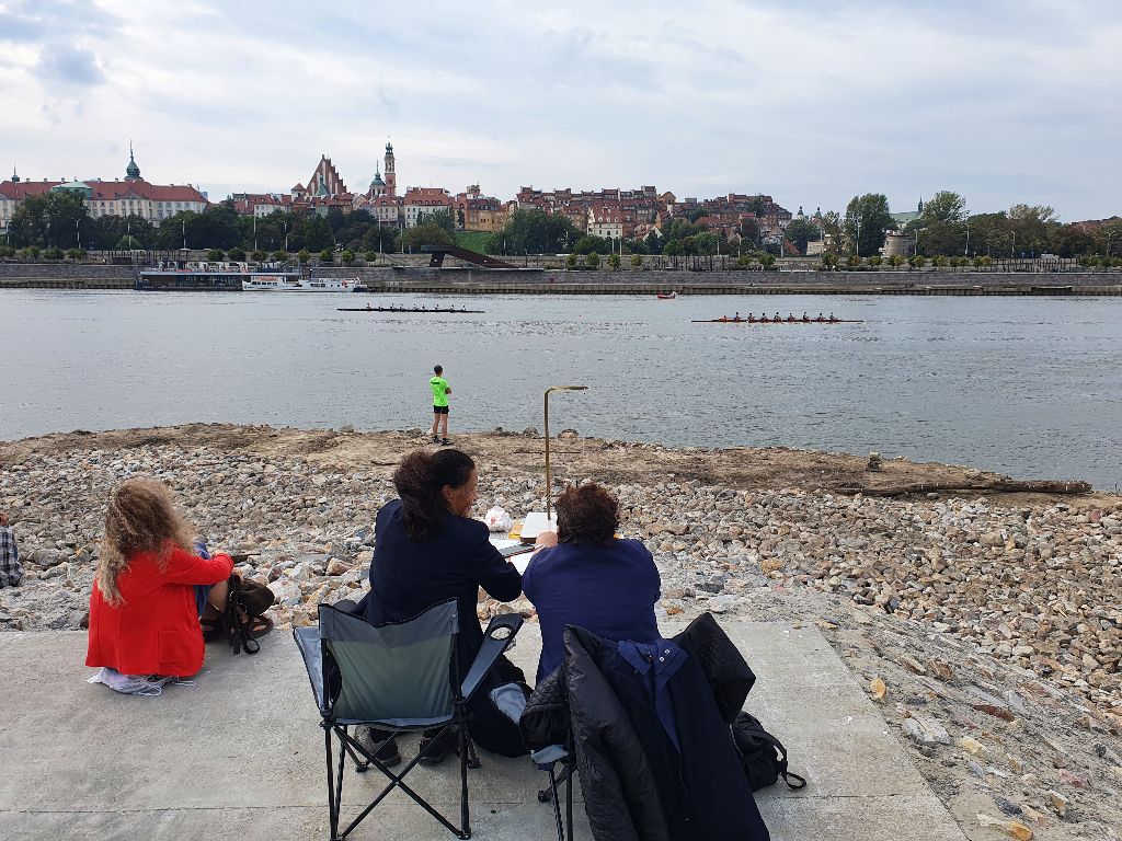 Die Jugendmannschaft wurde kurze Zeit später von polnischen Jugendlichen ebenfalls am Hotel abgeholt und direkt zur Regattastrecke geführt. Dort angekommen wurden die unbekannten Gegner abgecheckt. Trotz kurzer Verwirrung aufgrund des gestellten Bootsmaterials (eines der bereit liegenden Boote war Steuerbord-Schlag geriggert) und der Frage nach eventueller spontaner Bootsumbesetzung konnten jedoch alle beruhigt werden.