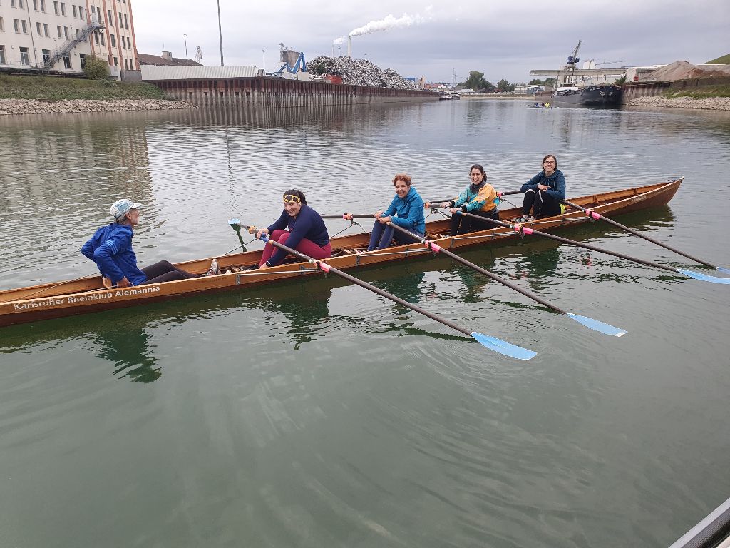 Die ersten „Trocken-Ruder-Versuche“ auf dem Ergometer brachten den Teilnehmenden den Bewegungsablauf näher. Diesen galt es dann jedoch bald im Boot und auf dem Wasser umzusetzen. Was schon eine Herausforderung für sich ist, wenn man zunächst mit der Koordination der zwei Ruder (Skulls) beschäftigt ist, gleichzeitig versucht auf den Rhythmus der Mitrudernden zu achten und dann noch die Kommandos des Steuermanns umsetzen muss.
