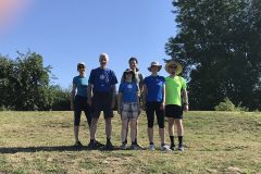 Mit im Bus: Johannes E., unser Fahrtenleiter, Silvia, Alexandra, Johannes B. und Wolfgang. Eine weitere Person konnte aufgrund von Corona leider nicht mitkommen. Hinter dem Bus: Nancy und 1901.