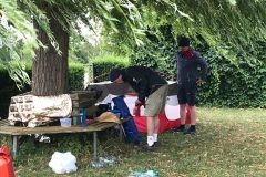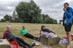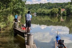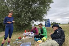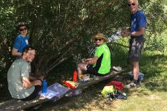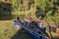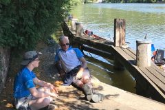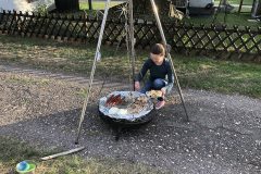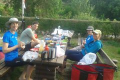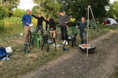 Der Bootssteg ist von einer zweiten Rudergruppe (Schulgruppe mit Lehrerin: „Zackzack“) komplett besetzt, eine Unterbringung der Boote an Land nicht möglich, sodass wir nach reiflichem Überlegen und Diskutieren die Boote AUF dem Steg vertäuen. Ein geliehener Grill samt Holzkohle ist eine gute Voraussetzung unseren Hunger zu stillen. Wolfgang hat einen leckeren Kartoffelsalat gezaubert. Heute Abend ist es kühl und die Mützen kommen zum Einsatz.