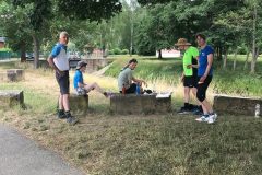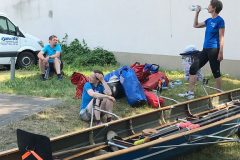 Samstag, Rückfahrt. Ein Frühstück auf der Terrasse des Ruderclubs mit frischen Butterhörnchen ist ein guter Anfang. Wir werden auf der Rückfahrt über Bonn fahren, da dort noch drei Boote abzuholen sind. Unsere Fahrer, Wolfgang und Johannes B., vielen Dank, chauffieren uns nach Karlsruhe. Gegen Abend sind wir da, laden ab und versorgen die Boote.