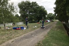 Abends werden die Zelte aufgebaut, in der Saale geplanscht und eine mäßig geschmackvolle Pizza mit ungewöhnlichem Belag bestellt.