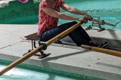 In Roßleben werden wir von Hanno des Ruderclubs Roßleben e.V. freundlich begrüßt. Er zeigt uns die Räumlichkeiten und schürt den Ofen, für eine warme Dusche, an. Hier sehe ich zum ersten Mal ein Ruderbecken und bin begeistert. Interessant ist seine Erklärung über zwei unbenutzte, nagelneue Einer, die seit mehr als dreißig Jahren im Bootshaus an der Decke hängen: Zur Zeit der Deutschen Demokratischen Republik wurden die Boote den Vereinen zugewiesen. Da unklar war, wann man wieder mit Booten rechnen konnte, wurden die Boote selbstverständlich angenommen (auch wenn kein aktueller Bedarf vorhanden war). Hier lernen wir auch, dass Johannes unser VL ist. Fahrtenleiter mit Schreibfehler? Nein: Verantwortlicher Leiter. Zukünftig hört er nur noch auf VL. Auf der Suche nach Kaffee und Kuchen im Ort bekommen wir noch ein Angebot, einem Konzert zu lauschen. Mangels passender Garderobe müssen wir leider ablehnen. Kaffee und Kuchen munden uns sehr.