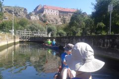 Sonntag: Heute geht es los. Ziel ist der Wechsel auf die Saale in der Nähe von Naumburg a d. Saale. Die Landschaft und der Flusslauf der Unstrut ist phänomenal, wir umrudern geschickt das „Gemüse“ und die Stimmung ist grandios. Wir haben fünf Schleusengänge und rudern ca. 49 km.
