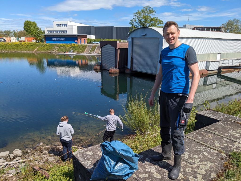 Vom Team Sauberes Karlsruhe mit Greifzangen und Handschuhen ausgestattet, machten sie sich daran, die Uferbereiche vom Müll zu säubern. Innerhalb von gut zwei Stunden füllten sie über 20 Säcke mit einer Vielzahl von Abfällen. Von alltäglichen Verschmutzungen wie Zigarettenstummeln, Fast-Food-Verpackungen und Kronkorken bis hin zu ungewöhnlichen Funden wie einer Heckenschere, ganz viel Sandspielzeug und Schutzblechen war alles dabei.Besonders die Wasser treibenden Folien- und Bauschaumreste erforderten immer wieder kreative Lösungen, um sie ans Ufer zu treiben.