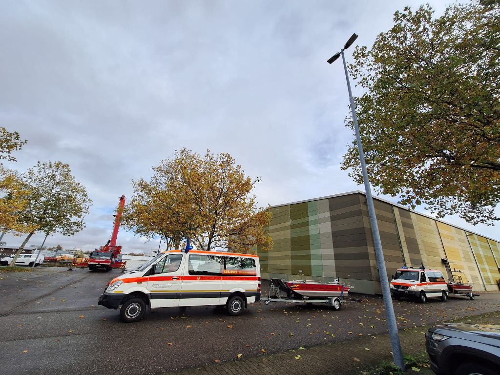 Nur die beiden Kranwagenfahrer der Feuerwehr fielen aus der Kleiderordnung heraus. Sie mussten aber ganz einsam über eine halbe Stunde ausharren, bis überhaupt mal ein Rettungsfahrzeug der schwimmenden Truppe ankam. Immerhin mit Blaulicht. Dann dauerte es allerdings nochmal eine halbe Stunde, bis das erste Boot auf dem Parkplatz des Hafenkontors auf der anderen Seite des Nordbeckens am Haken schwebte.