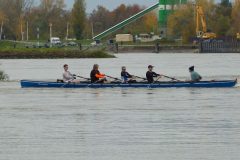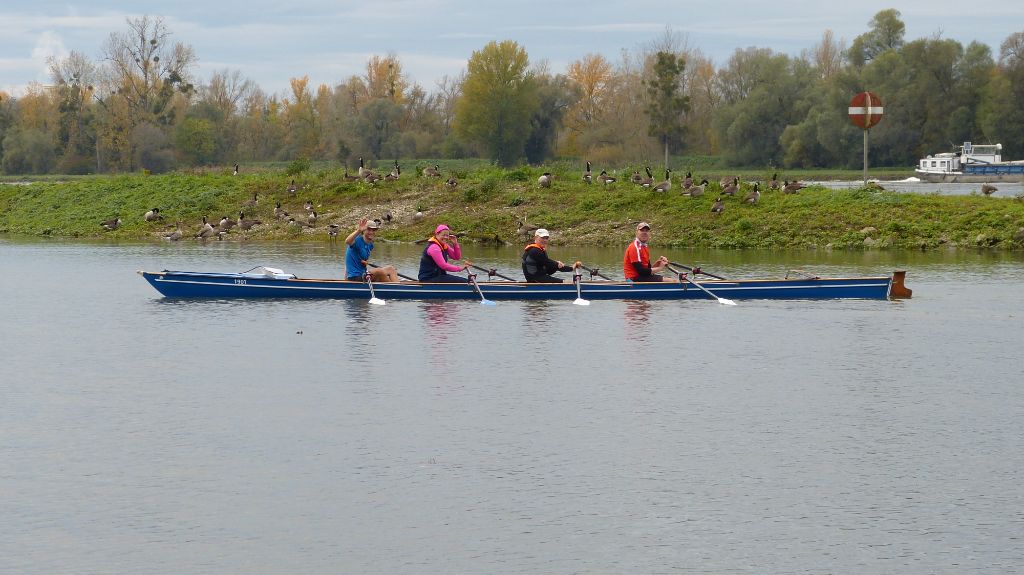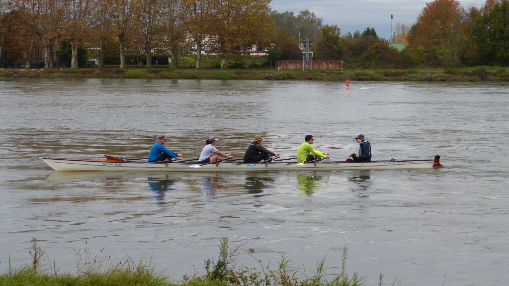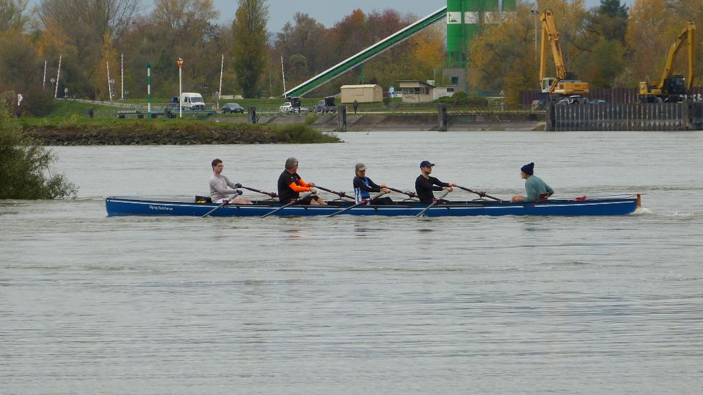Das Prinzip der Allerereiligen-Tagesfahrt war einfach: wir treffen uns alle um 9, fahren so lange wir können rheinaufwärts, also gegen die Strömung und drehen dann um 13 Uhr um. Dann rudern wir alle zurück und sind gegen 14 Uhr wieder im Ruderverein. Das entspricht grob einer Tagesfahrt.