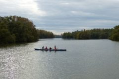 Motiviert durch die rettende Toilette, ging die Fahrt dann doch nochmal eiliger voran als sie ohnehin schon war. So tauchten wir also in den Goldkanal ein und unsere biologischen Bedürfnisse wurden dann schnell durch das schöne Panorama rund um den Rastatter Ruderclub in der Hintergrund gedrängt. Gesäumt von Baumreihen, einer Hafenidylle mit Segel- und Yachtbooten und Wasservögeln konnte man der ab und an vertretenen Meinung, dass der RCR das schönste Ruderrevier hat durchaus etwas abgewinnen.
