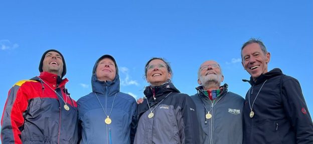 Der Junge-Mixed-Vierer mit Mariarita, Ariane, Johannes, Frederic und Anke an den Steuerseilen hatte sich wie schon ’24 bei der Auswahl des Rennens taktisch vergriffen: mal ist die Konkurrenz in der Altersklasse 36 Jahre schneller als die offene Klasse, mal umgekehrt. Nun wurde es Platz 4 – gerade nicht auf dem Treppchen und leider auch ohne Foto.