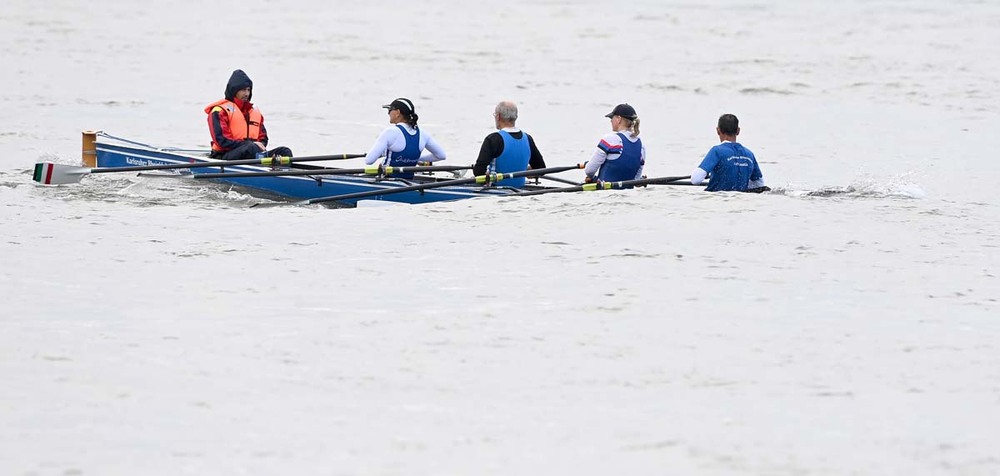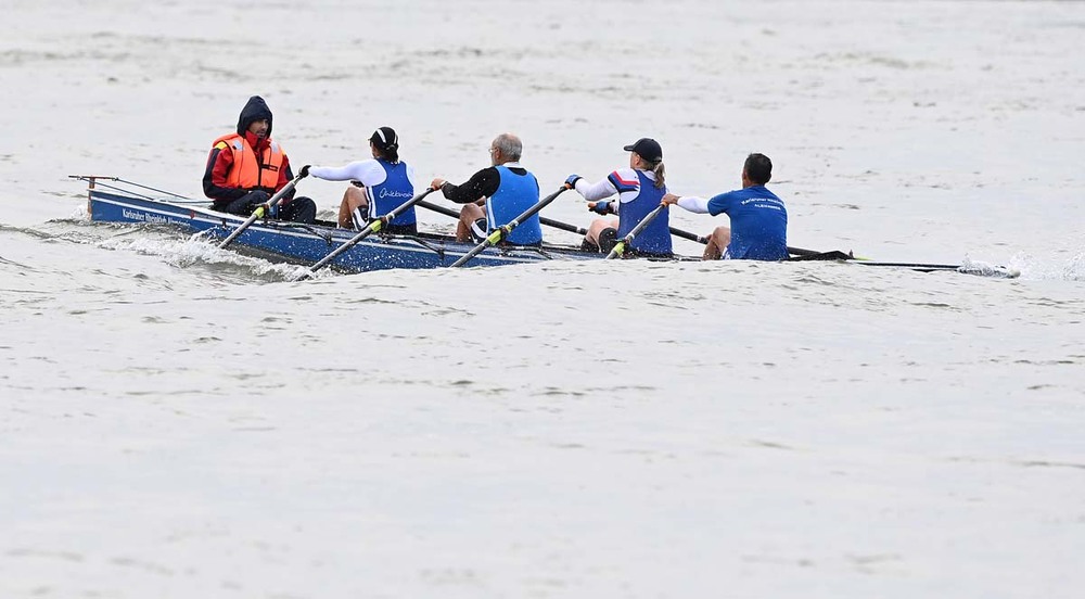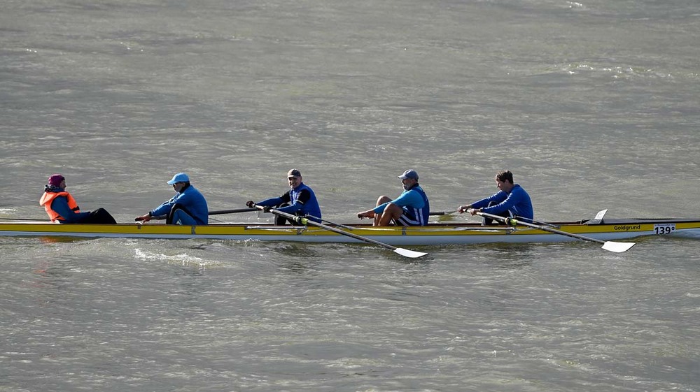 Der Riemen-Vierer mit zwei Michaels, Roland, Thiago und Steuerfrau Uta bekam dann auf der Strecke doch nochmal ein paar Beaufort zusätzlich zu spüren, was nicht unbedingt Begeisterung erzeugte. Hinter der langjährig bestimmenden Riemen-Mannschaften aus Neuwied, aber noch knapp vor Abo-Sieger Ulm sprang in einem beachtlichen Rennen „alter vor jungen“ Männer letztlich die Bronze-Medaille heraus.