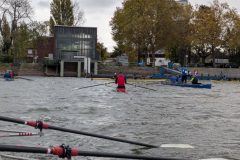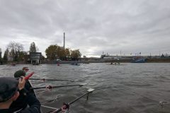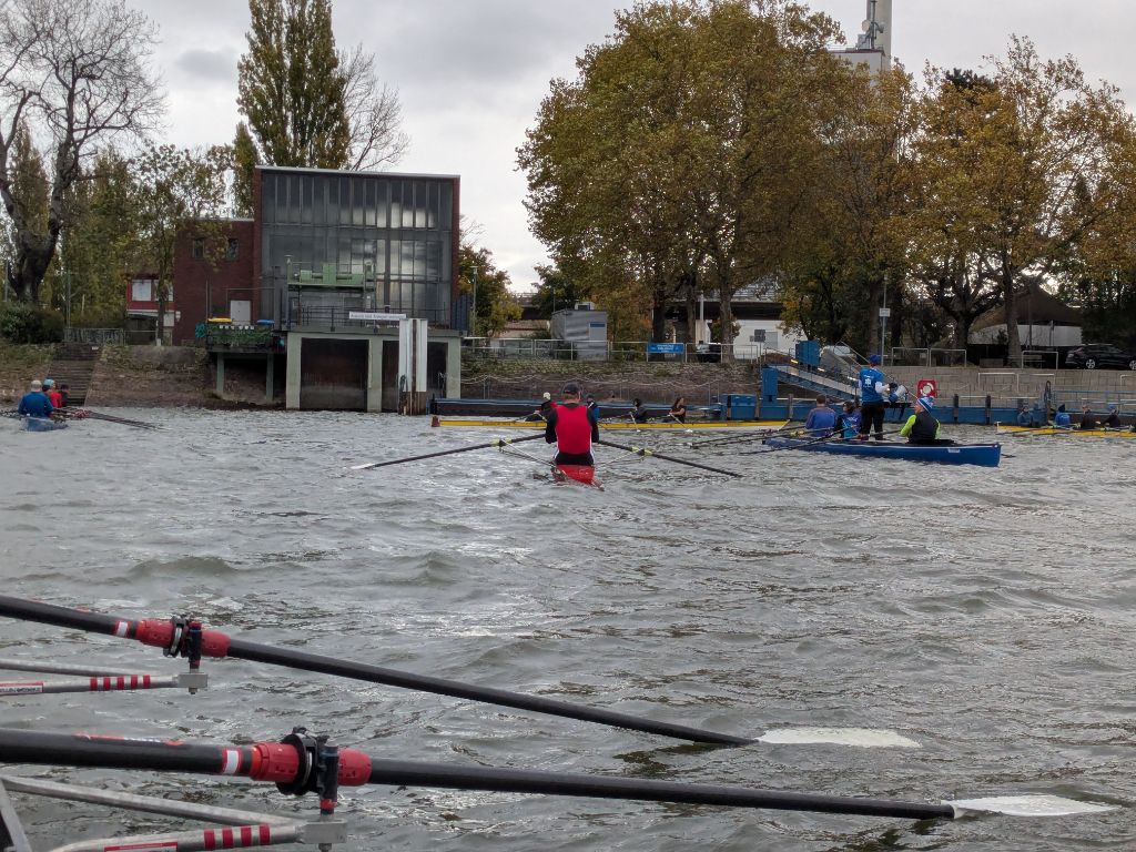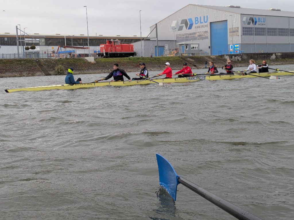 Trotz des ungemütlichen Wetters – kräftiger Wind und Regenschauer erinnerten eindrücklich daran, warum das Abrudern als Saisonende gilt – fanden sich zahlreiche Boote auf dem Wasser ein. Am Liegeplatz der MS Karlsruhe versammelten sich Boote des Karlsruher Rheinklub Alemannia und des Karlsruher Ruderverein Wiking zu einem beeindruckenden Bild: Von Einern bis Achtern, von Gig- bis Rennbooten, Riemen und Skull – die gesamte Bandbreite des Rudersports war vertreten.
