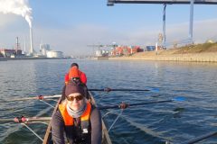 Im Pionierhafen tauschen wir den Steuerplatz und informieren das andere Ruderboot über unser Wendemanöver, auch sie sind dabei umzukehren. Im Hafen wird noch einmal getauscht, jetzt kriecht die Kälte langsam in die Fingerspitzen.