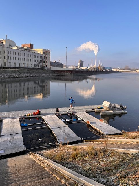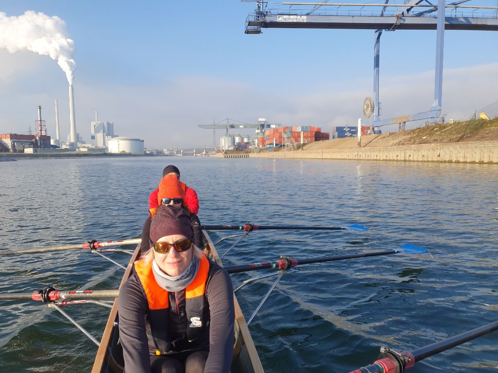 Im Pionierhafen tauschen wir den Steuerplatz und informieren das andere Ruderboot über unser Wendemanöver, auch sie sind dabei umzukehren. Im Hafen wird noch einmal getauscht, jetzt kriecht die Kälte langsam in die Fingerspitzen.