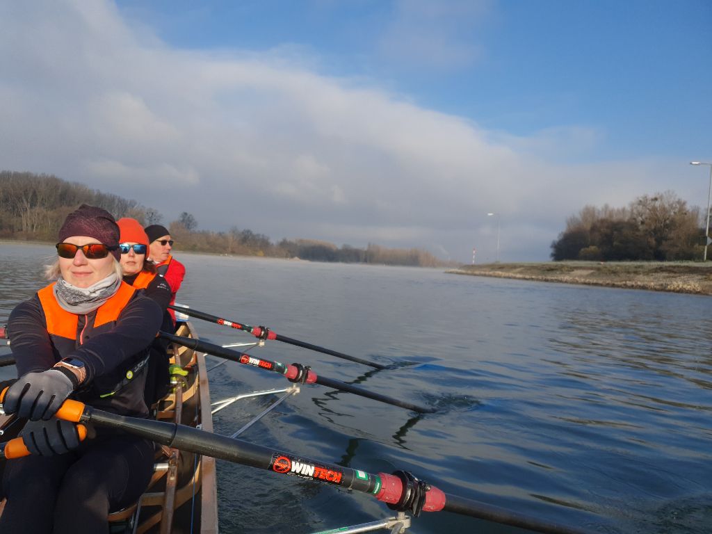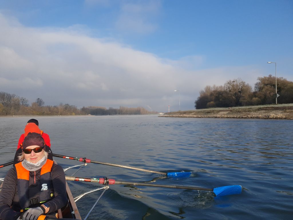 An diesem Samstag (22.11.2025) wollen wir auf dem Rhein an Speyer vorbei ins Reffenthal rudern, nachts hat es das erste Mal in diesem Herbst kräftig gefroren (-5 Grad), auch morgens ist es noch unter Null. Aber die Sonne kündigt sich an, alle Ruderinnen und Ruderer kommen im Zwiebellagenlook, Thomas, der die Fahrtenleitung übernommen hat, weist noch einmal auf die Feuchtigkeit und das kalte Wasser hin: dies ist eine Wanderfahrt, ruhiges, besonnenes Verhalten ist bei diesen Temperaturen Pflicht, Wellen sollten lieber defensiv genommen werden und bitte achtgeben auf die Buhnen!