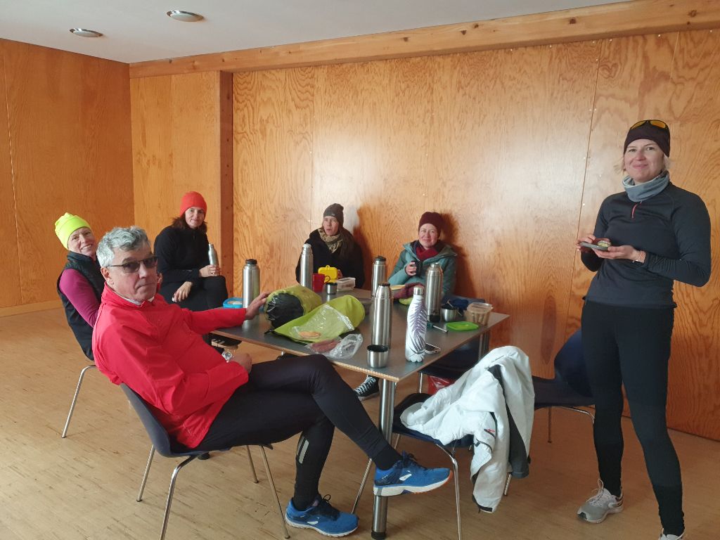 Nachdem die Boote in der Bootshalle verstaut sind, sitzen wir alle plaudernd bei heißem Tee, Butterbroten und Kuchen zusammen. Leider reichen die 16 Km nicht für eine Wanderfahrt wie angepeilt, das Fahrtenabzeichen 2025 rückt so für die ein oder den anderen nun doch in unerreichbare Ferne. Zwei wackere Ruderer erklären sich bereit, den Bus und Hänger von unserem eigentlichen Ziel, dem Bootshaus im Reffenthal, wieder abzuholen. So ist aus unserer Tagesfahrt ein etwas spezielles, samstägliches Training geworden …