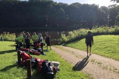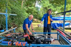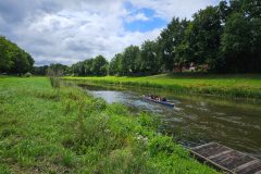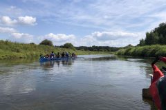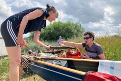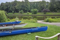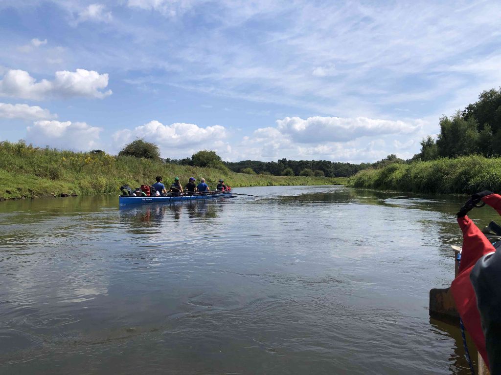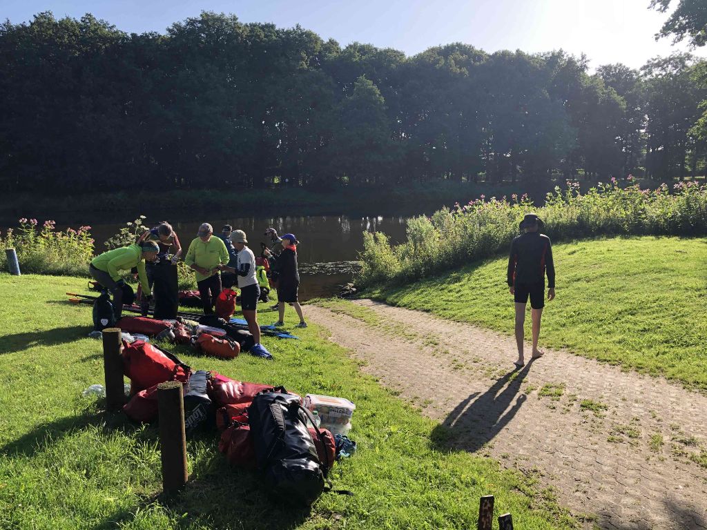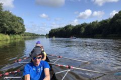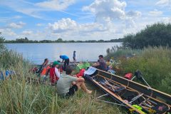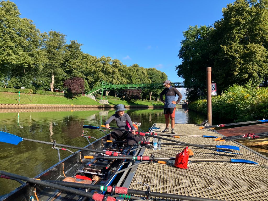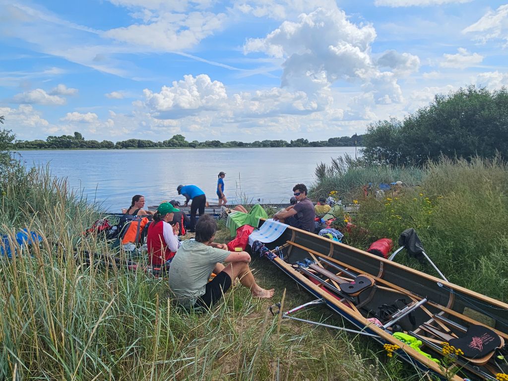 Nach einer Übernachtung im Ruderverein in Hann. Münden erreichten wir den Startpunkt Herzlake an der Hase im tiefsten Emsland. Von dort aus rückte am Samstag eine 3er Mannschaft mit Fahrzeugen und Bootsanhänger aus an den Zielort Nordenham, um die Fahrzeuge dort für unsere Rückreise bereitzustellen. Der Rest der Teilnehmer*innen verbrachte zum Aufwärmen der Gruppendynamik einen unvergesslichen Tag in Herzlake, wo man sich an Garagenflohmärkten, diversen Regenschauern, ausgedehnten Aufenthalten im Cafe, sowie nahezu unzähligen Besuchen im Edeka erfreuen konnte. Die Ausgereisten kehrten pünktlich zum Abendessen nach Bahn-/Bus- und Taxifahrt von ihrer Rundtour zurück – wir waren ruderbereit!