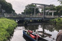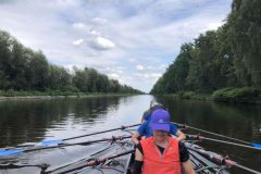 Auch der vierte Rudertag mit den ca. 50 Ruderkilometern auf dem Elisabethfehnkanal und dem laaaangen geraaaaden Küstenkanal, den 4 Schleusen und tiefen Brücken, ist besonders hervorzuheben. Die Brücken und Schleusen sorgten am gemütlichen Elisabethfehnkanal bei manch einem/r für Elfsteden-Feeling. Dort folgte eine kleine Schleuse auf die andere, sodass der Schleusenwärter uns begleitete, um eine nach der anderen für uns zu öffnen. Eine längere Schleusenzeit durften wir mit dem Besuch im Moor- und Fehnmuseum verbringen. Der Besuch fiel leider zu kurz aus, schon ging die Schleusenreise weiter und wir bedauerten, längst nicht alles gesehen zu haben.
