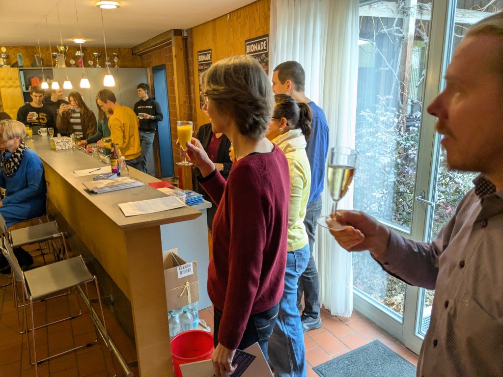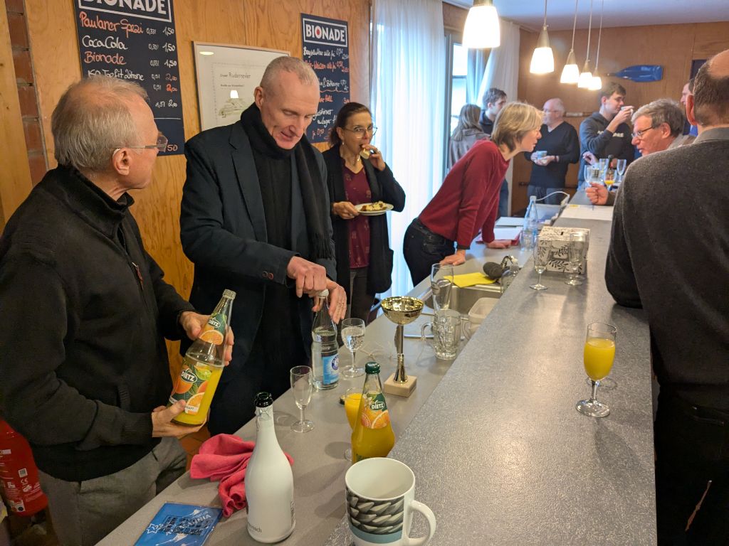 Wie es beim Karlsruher Rheinklub Alemannia gute Tradition ist, fand auch in diesem Jahr Anfang Januar der Neujahrsempfang im Bootshaus statt. Mit einem Glas Sekt in der Hand kamen die Mitglieder zusammen, um gemeinsam ins neue Jahr zu starten. Der Empfang war diesmal besonders gut besucht und spiegelte eindrucksvoll die große Altersspanne und Vielfalt unseres Vereins wider – von jungen Aktiven bis zu langjährigen Mitgliedern.